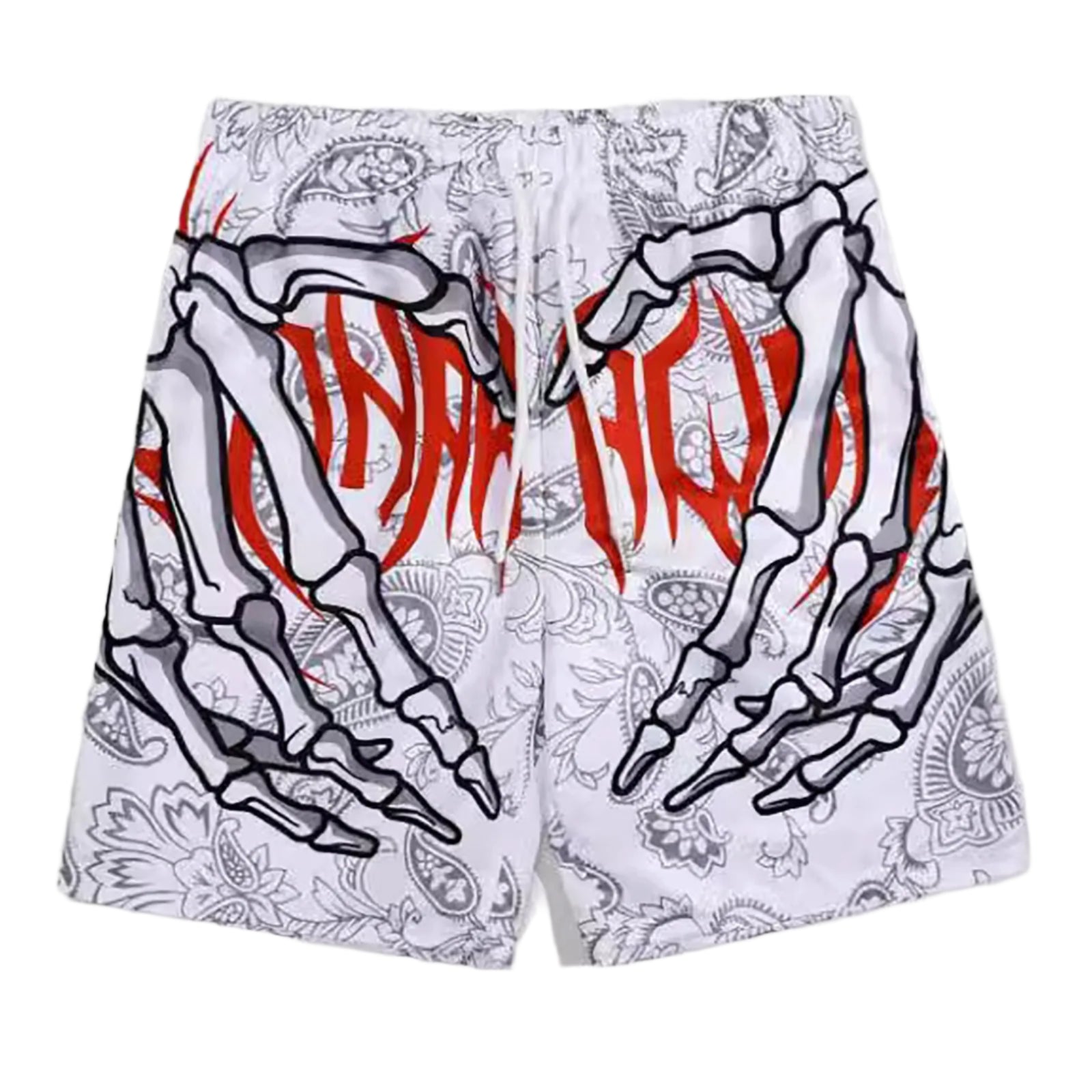 Dive into the dark side of paradise with the Reaper Swim Shorts a bold fusion of tropical vibes and edgy streetwear. Featuring a vibrant Hawaiian design twisted with attitude, these swim shorts showcase haunting skulls reaching from the sides, paired with exotic Hawaiian-style lettering across the center. It's the beach look for those who don’t just blend in they take over.